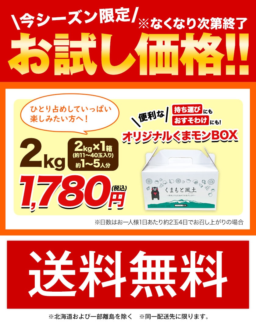 | 内容 | プレミアム熊本みかん2kg ・サイズ不揃い ※玉数は、大きさにより変動します。 |