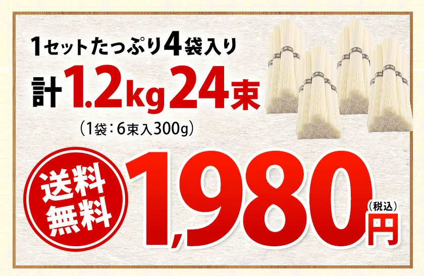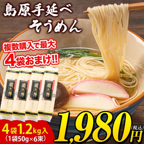 \2セット以上購入でおまけ増量中!/島原 手延べ そうめん 1.2kg 4袋入(50g×24束) 送料無料《2セット以上購入でおまけ増量》 素麺 手延べ にゅうめん にゅう麺 乾麺 お取り寄せ《1-5営業日以内に出荷(土日祝除く)》