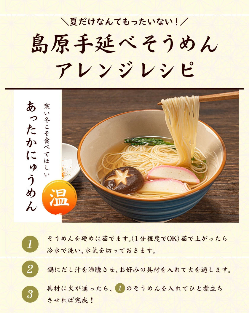 \2セット以上購入でおまけ増量中!/島原 手延べ そうめん 1.2kg 4袋入(50g×24束) 送料無料《2セット以上購入でおまけ増量》 素麺 手延べ にゅうめん にゅう麺 乾麺 お取り寄せ《1-5営業日以内に出荷(土日祝除く)》のレビュー