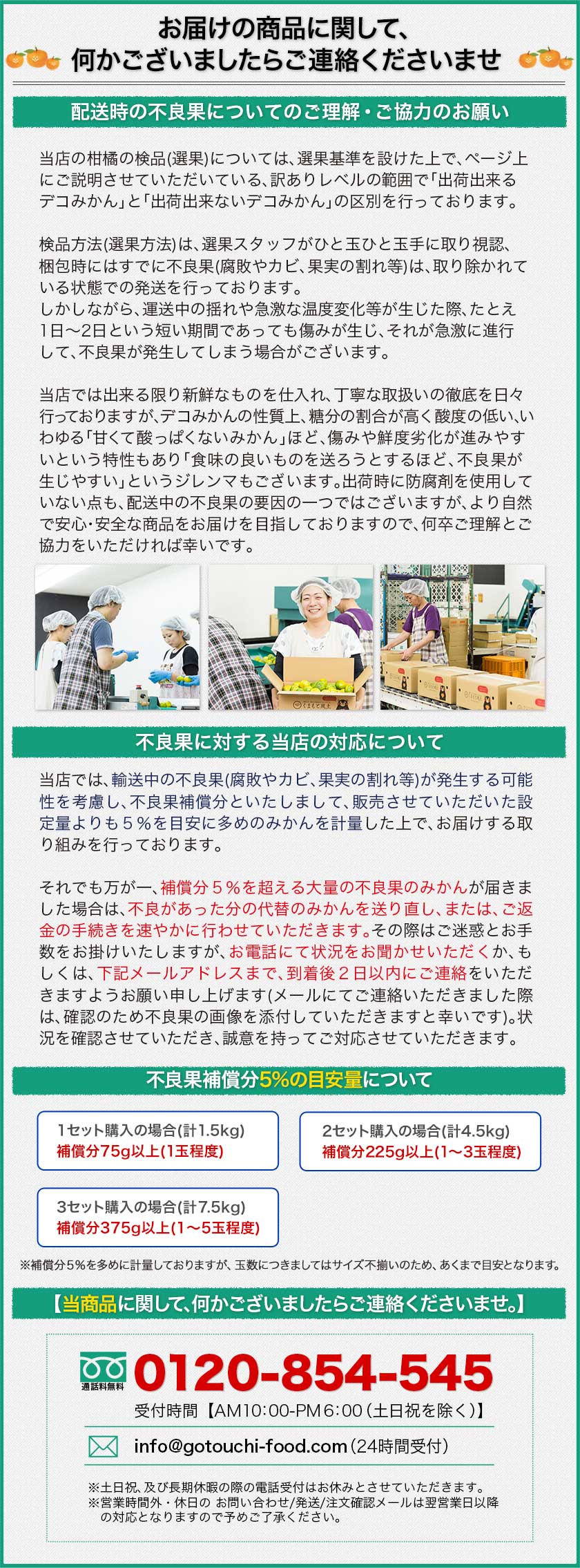 | 納品書等の同封について | 当店では、資源保護の観点から、納品書、請求書、 領収書の同封は行っておりません。 |