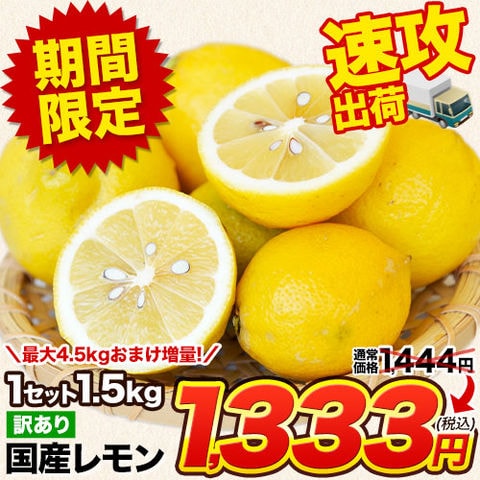 【★12月23日9時59分まで111円OFF!★1444円⇒1333円!】国産 レモン 訳あり 1.5kg 送料無料 熊本県産 サイズ不選別 フルーツ 檸檬 《1-5営業日以内に出荷予定(土日祝日除く)》---d2_wlemon_s_25_1333_1500g---