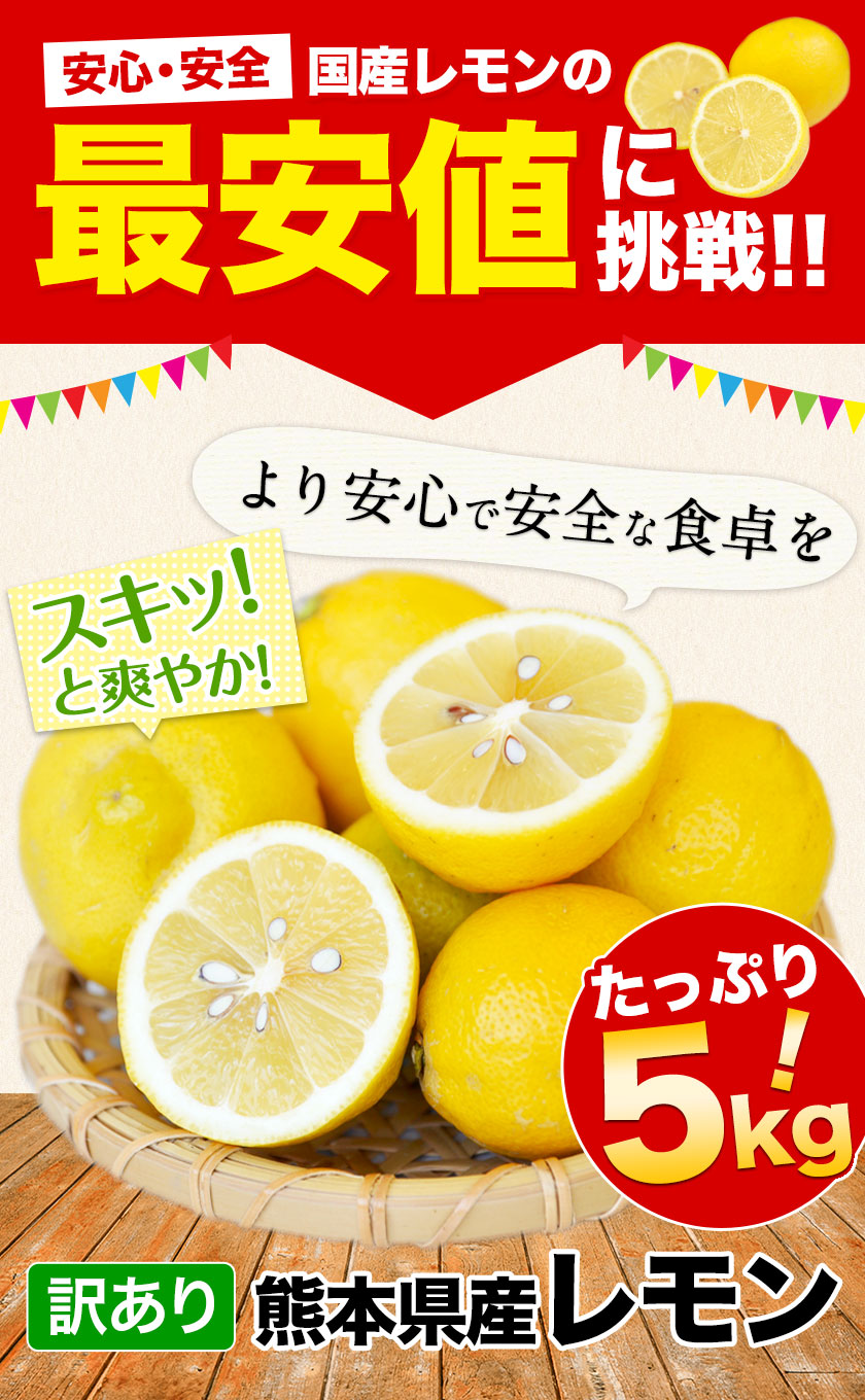 国産 レモン 訳あり 5kg 送料無料 熊本県産 サイズ不選別 フルーツ 檸檬 《1-5営業日以内に出荷予定(土日祝日除く)》