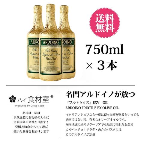 750ml×3本 アルドイノ オリーブオイル エクストラバージン フルクトゥス エキストラヴァージン ギフト 油 オイル 【常温/全温度帯可】