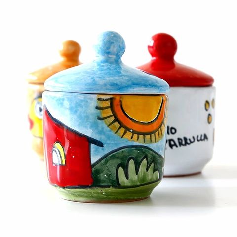 シチリア産世界に一つ!ニーノパルッカ陶器のスパイスポッド!トラーパニ産塩入り!一つずつハンドメイド!(食塩)【全温度帯可】*絵柄はご選択できませんのでご了承下さい。 塩 シチリア イタリア 胡椒 インテリア 陶器 スパイス ポット