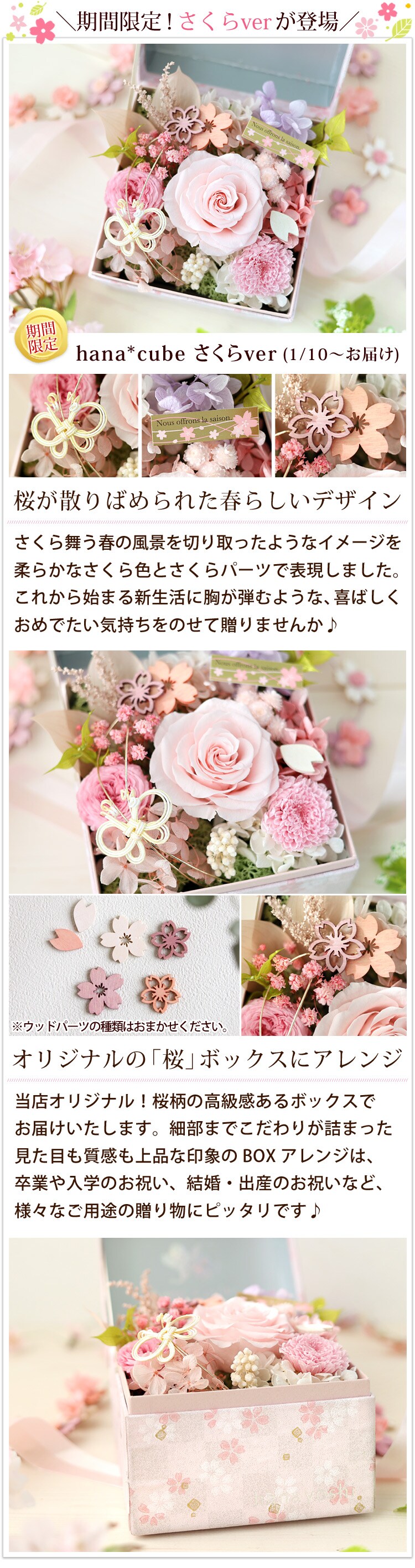 プリザーブドフラワー hana*cube「桜ver」【手提げ袋付】花由