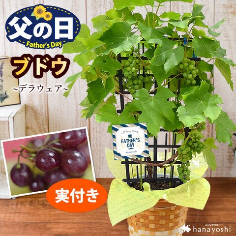 【父の日ギフト2023】健康果実 実付きぶどう「デラウェア」の鉢植え【6月14~18日の間でお届け※当店おまかせ】※北海道・沖縄はお届け不可 花由