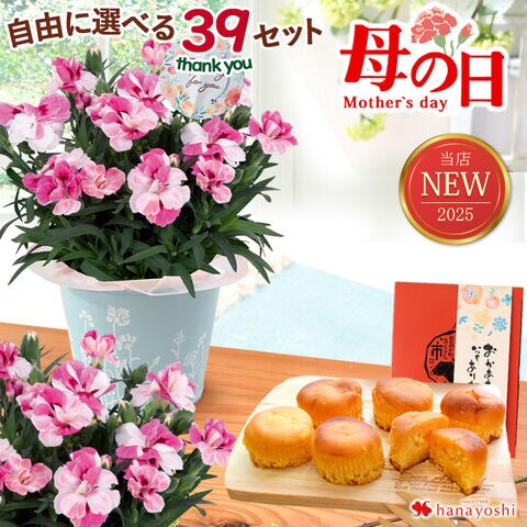 母の日 ギフト 花鉢【母の日ギフト2025】組合せ39通り 花とスイーツのセット カーネーション「ピンク&プラウド」 & なると金時スイートポテト【5月7~12日の間でお届け※当店おまかせ】※北海道・沖縄はお届け不可 花由