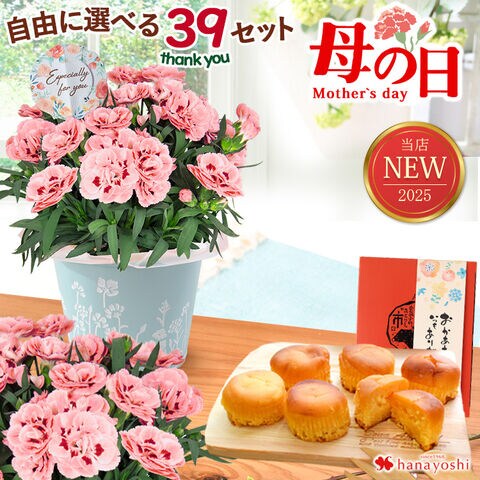 \まだ間に合う(地域限定)/母の日 ギフト 花鉢【母の日ギフト2025】組合せ39通り 花とスイーツのセット カーネーション「ファンシーサーモン」 & なると金時スイートポテト【5月7~12日の間でお届け※当店おまかせ】※北海道・沖縄はお届け不可 花由