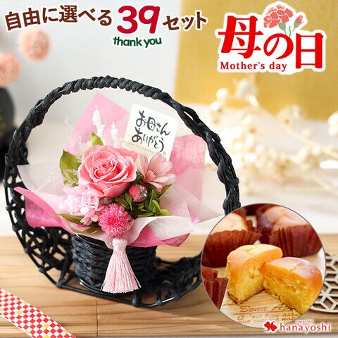母の日 ギフト プリザーブドフラワー【母の日ギフト2025】組合せ39通り 花とスイーツのセット 和風プリザーブドフラワー & なると金時スイートポテト【5月7~12日の間でお届け※当店おまかせ】※北海道・沖縄はお届け不可 花由