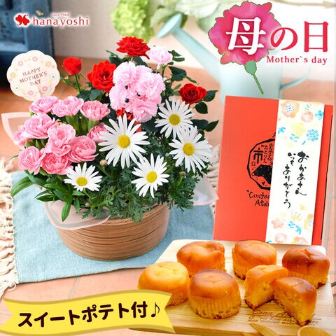 \まだ間に合う(地域限定)!/【母の日ギフト2025】フラワーバスケット 人気の花鉢がぎゅっ!ふわふわプードルが笑顔をお届け & スイートポテトセット【5月6~11日の間でお届け※当店おまかせ】※北海道・沖縄はお届け不可 花由