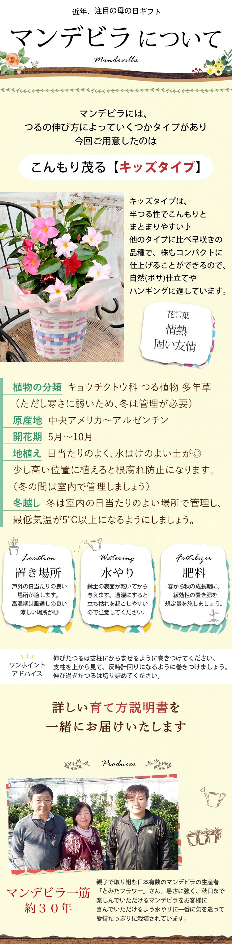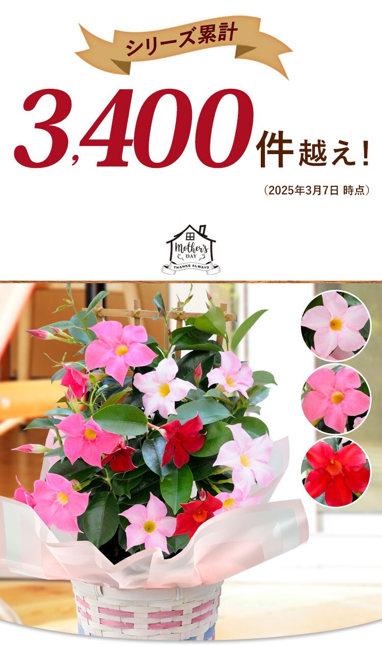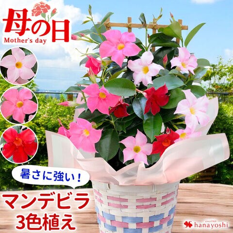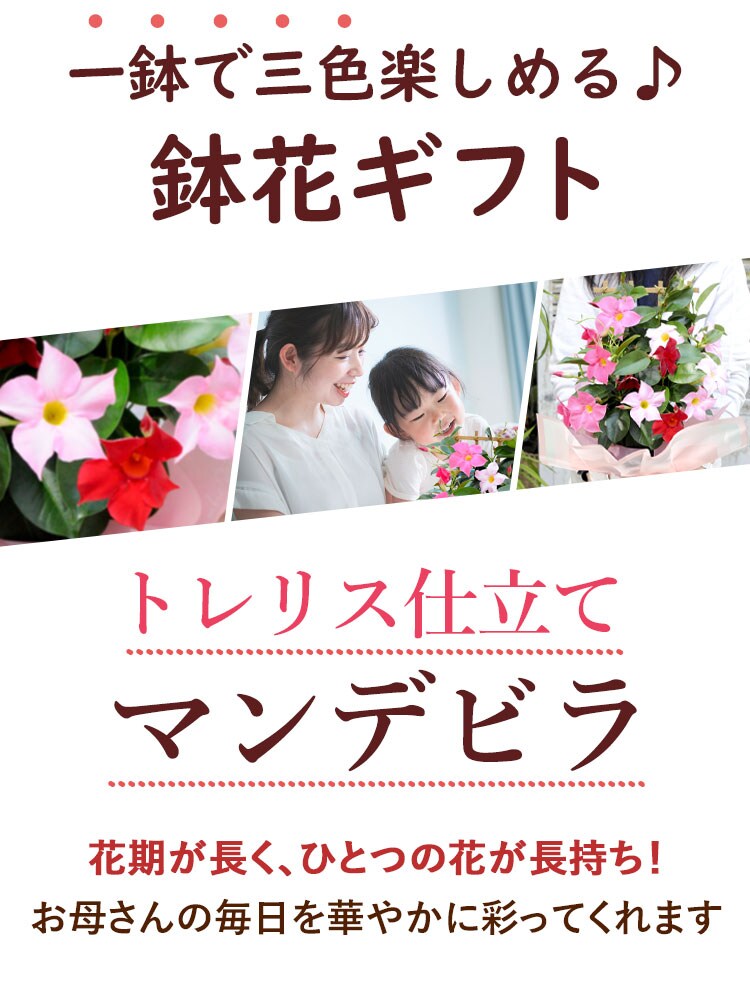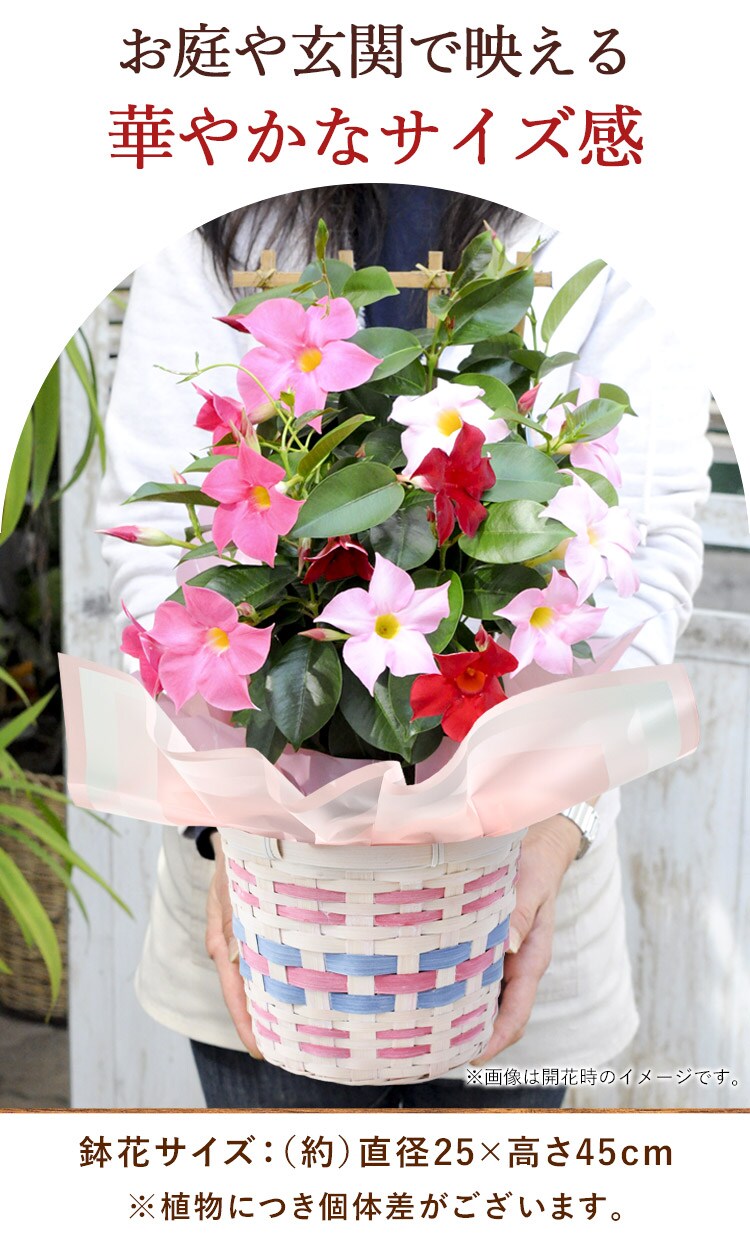 \まだ間に合う(地域限定)!/母の日 ギフト 花鉢【母の日ギフト2025】鉢花ギフト マンデビラ混色プランター植え トレリス仕立て【5月6~11日の間でお届け※当店おまかせ】※北海道・沖縄はお届け不可 花由