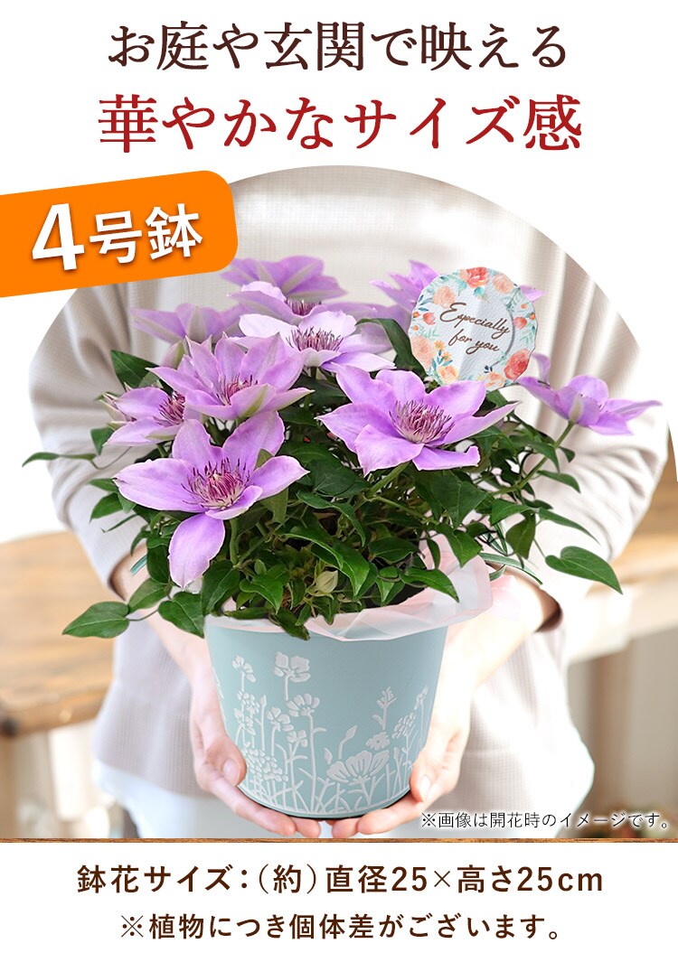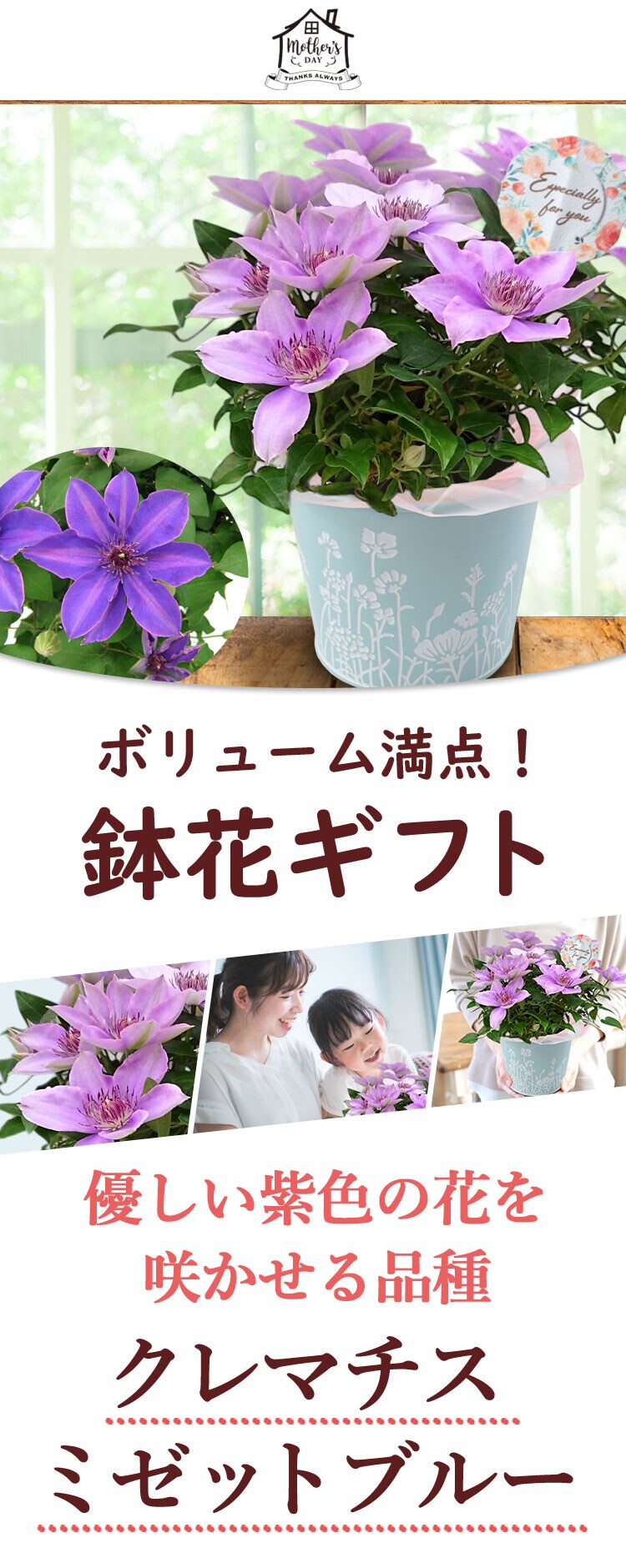 母の日 ギフト 花鉢【母の日ギフト2025】鉢花ギフト クレマチスの鉢植え「ミゼットブルー・4号」【5月6~11日の間でお届け※当店おまかせ】※北海道・沖縄はお届け不可 花由