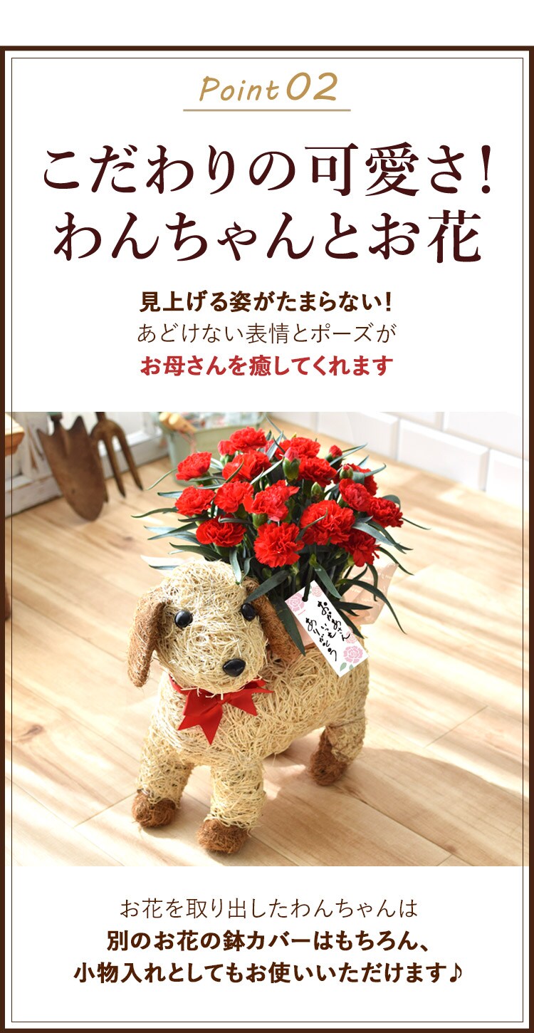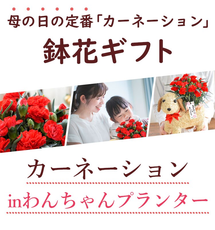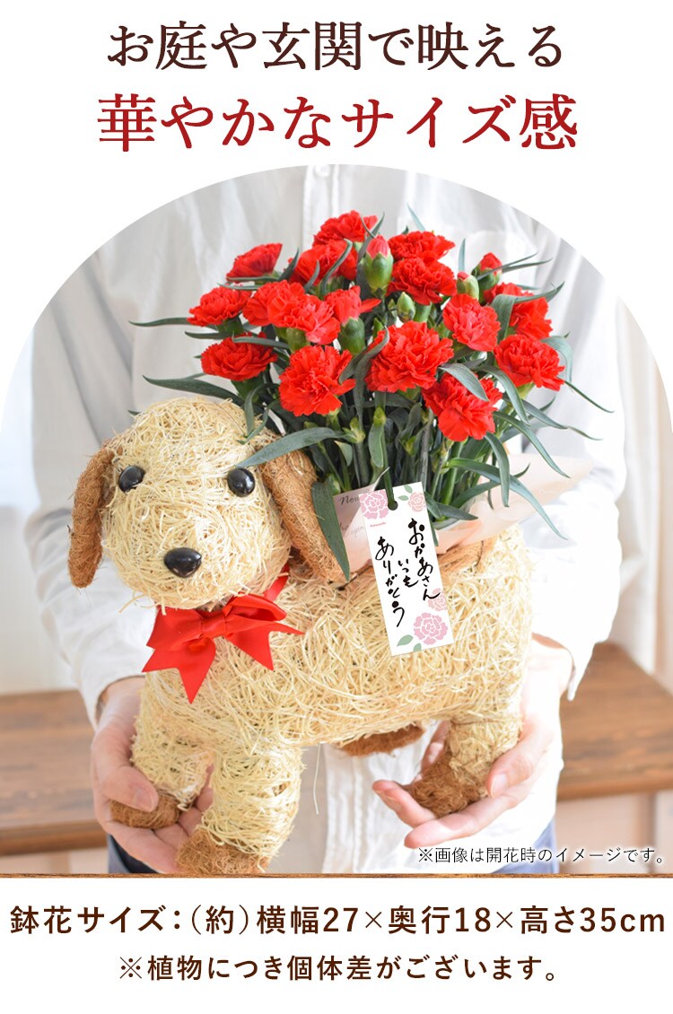 母の日 ギフト 花鉢【母の日ギフト2025】鉢花ギフト わんちゃんプランター inカーネーション【5月6~11日の間でお届け※当店おまかせ】※北海道・沖縄はお届け不可 花由