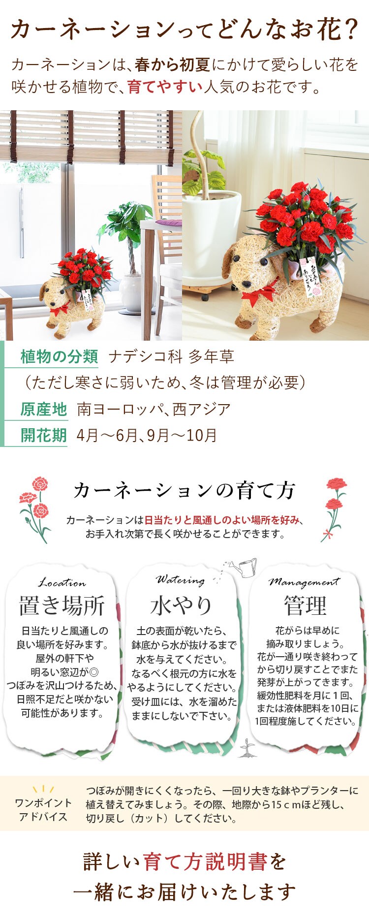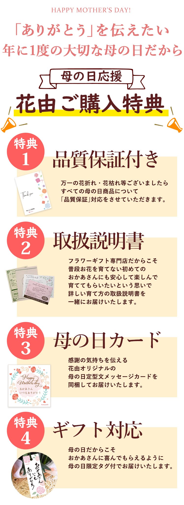 当店オリジナル母の日カード/育て方説明書/品質保証付きショップカード