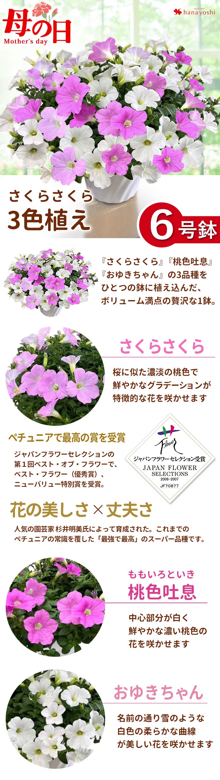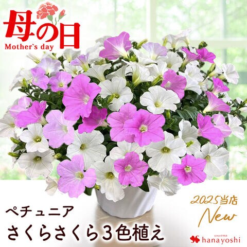 \まだ間に合う(地域限定)!/母の日 ギフト 花鉢【母の日ギフト2025】鉢花ギフト ペチュニア「さくらさくら3色植え」【5月6~11日の間でお届け※当店おまかせ】※北海道・沖縄はお届け不可 花由