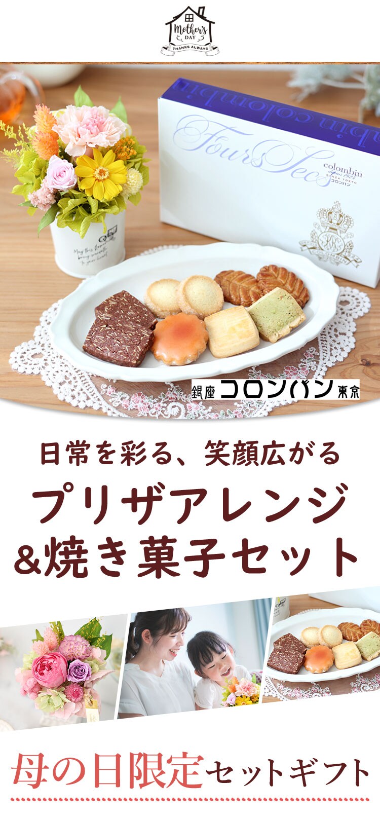 【母の日ギフト2025】プリザーブドフラワー パレット「母の日キュートver」& 焼き菓子セット【5月6~11日の間でお届け※当店おまかせ】※北海道・沖縄はお届け不可 花由