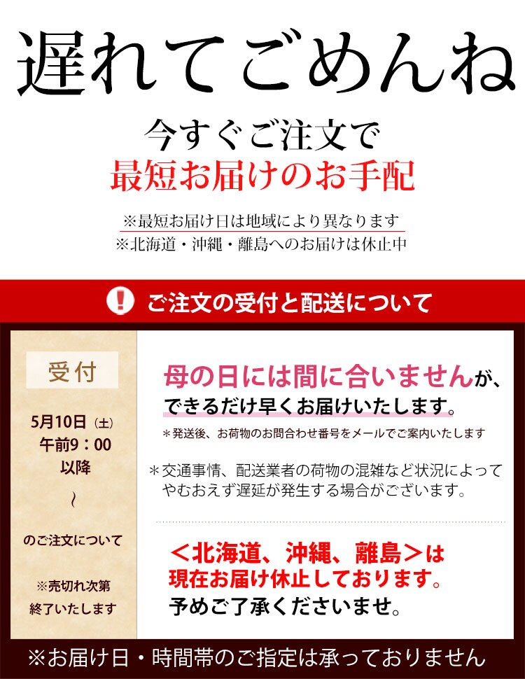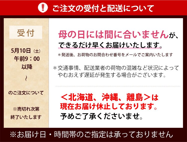 - 正午12時までの受付で即日発送 ※届け日は当店おまかせ