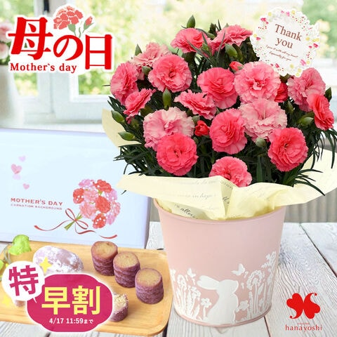 \特早割!/母の日 2026 組合せ40通り 花とスイーツのセット カーネーション「さくらもなか」 & ふぢ餅&鳴門のきんとき 花 ギフト プレゼント 鉢植え
