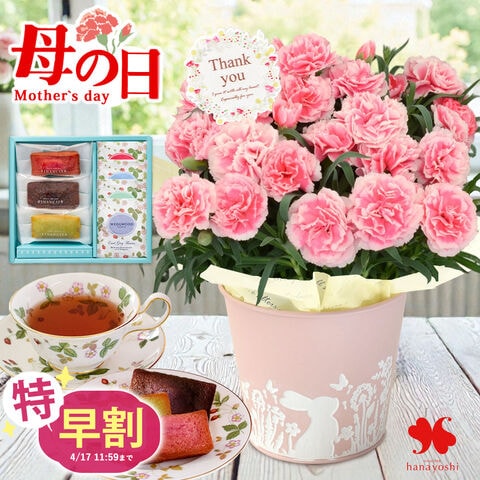 \特早割!/母の日 2026 組合せ40通り 花とスイーツのセット カーネーション「ティーパーティ」 & フィナンシェ&紅茶 花 ギフト プレゼント 鉢植え
