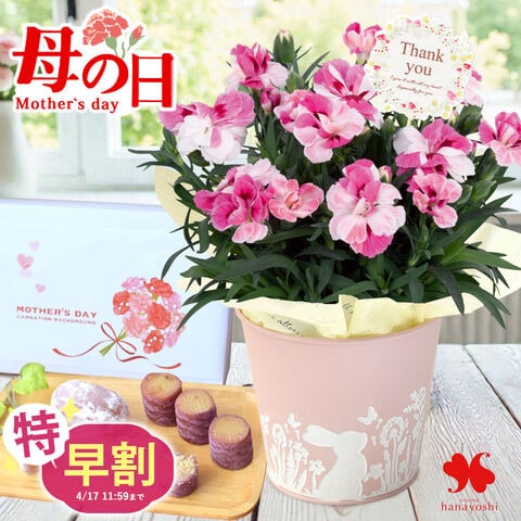 \特早割!/母の日 2026 組合せ40通り 花とスイーツのセット カーネーション「ピンク&プラウド」 & ふぢ餅&鳴門のきんとき 花 ギフト プレゼント 鉢植え