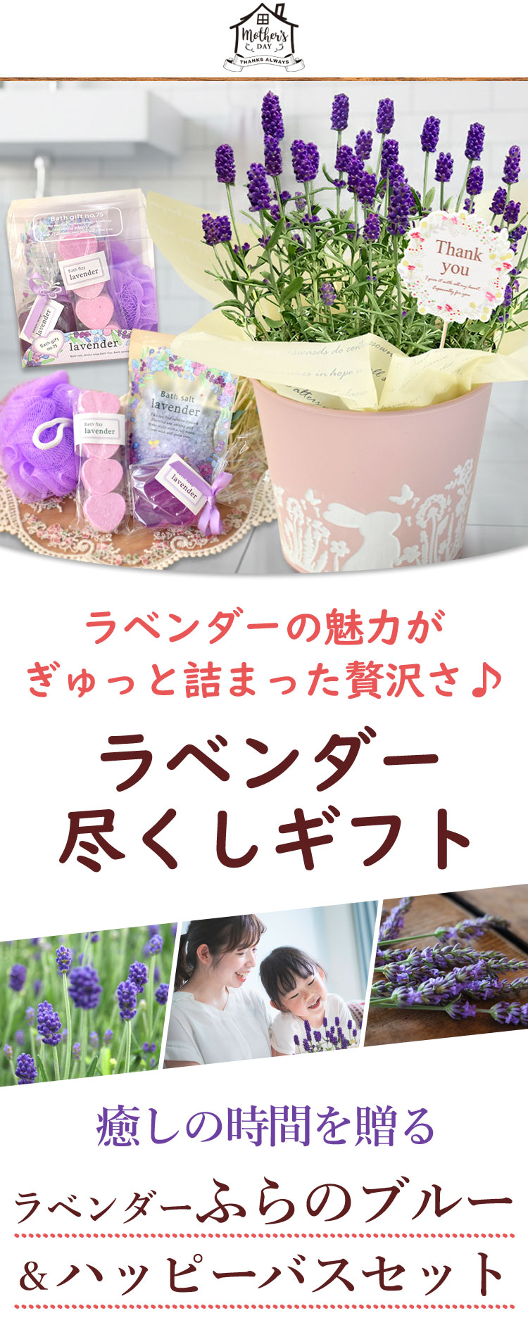 \早割!/母の日 2026 ラベンダー 鉢植え & ラベンダーバスセット 花 ギフト プレゼント ふらのブルー バスセット