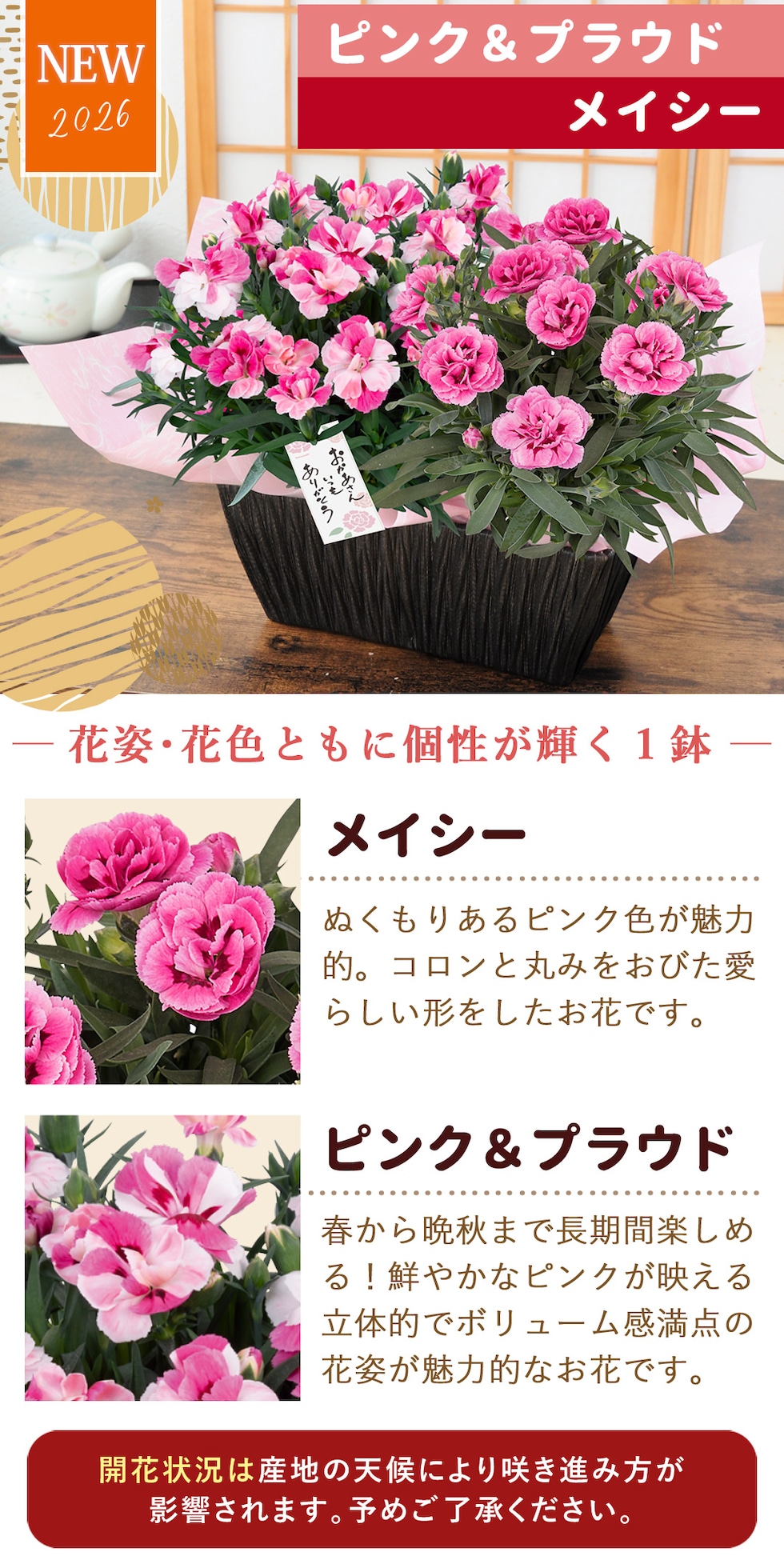 \早割!/母の日 2026 1鉢で2色楽しめる!モリヒロさんのカーネーション和風寄せ籠「ピンク&プラウド・メイシー」 花 ギフト プレゼント