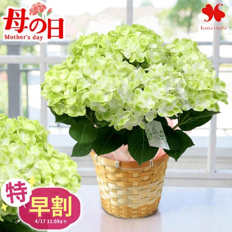 \特早割!/母の日 2026 あじさい 鉢植え 5号鉢 inバスケット「グリーンラテ」 花 ギフト プレゼント アジサイ 紫陽花