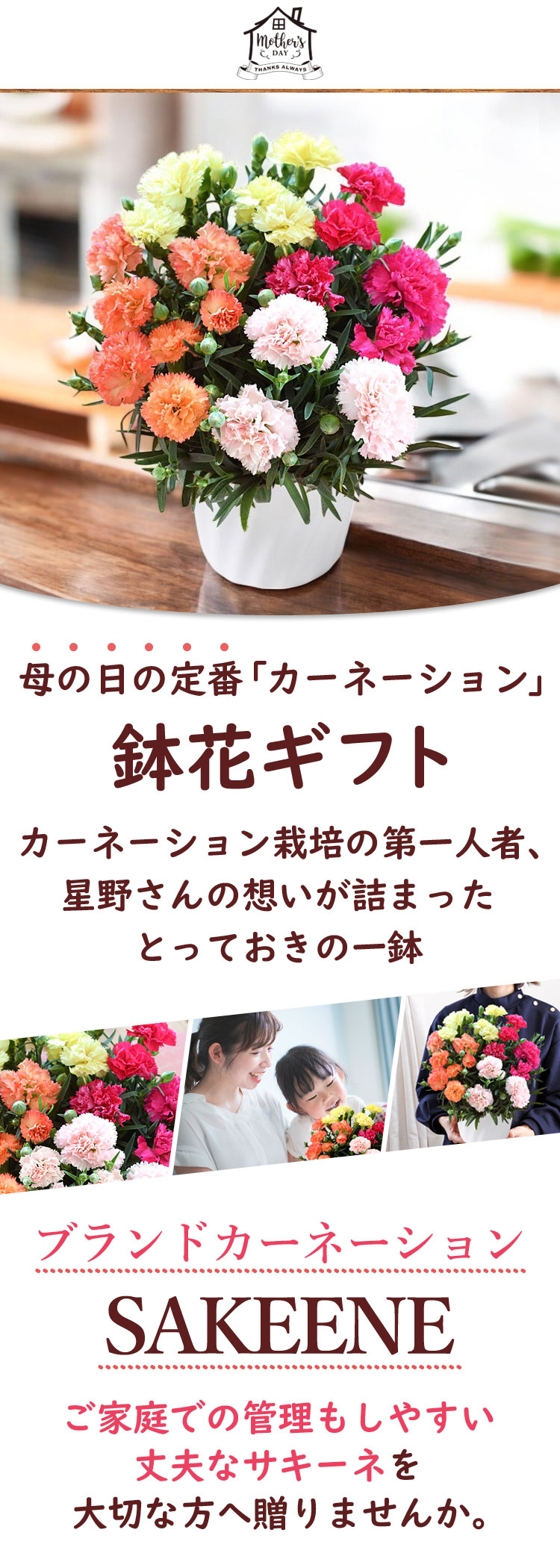 \特早割!/母の日 2026 星野さんのカーネーション4色植え「サキーネ」 鉢植え 花 ギフト プレゼント