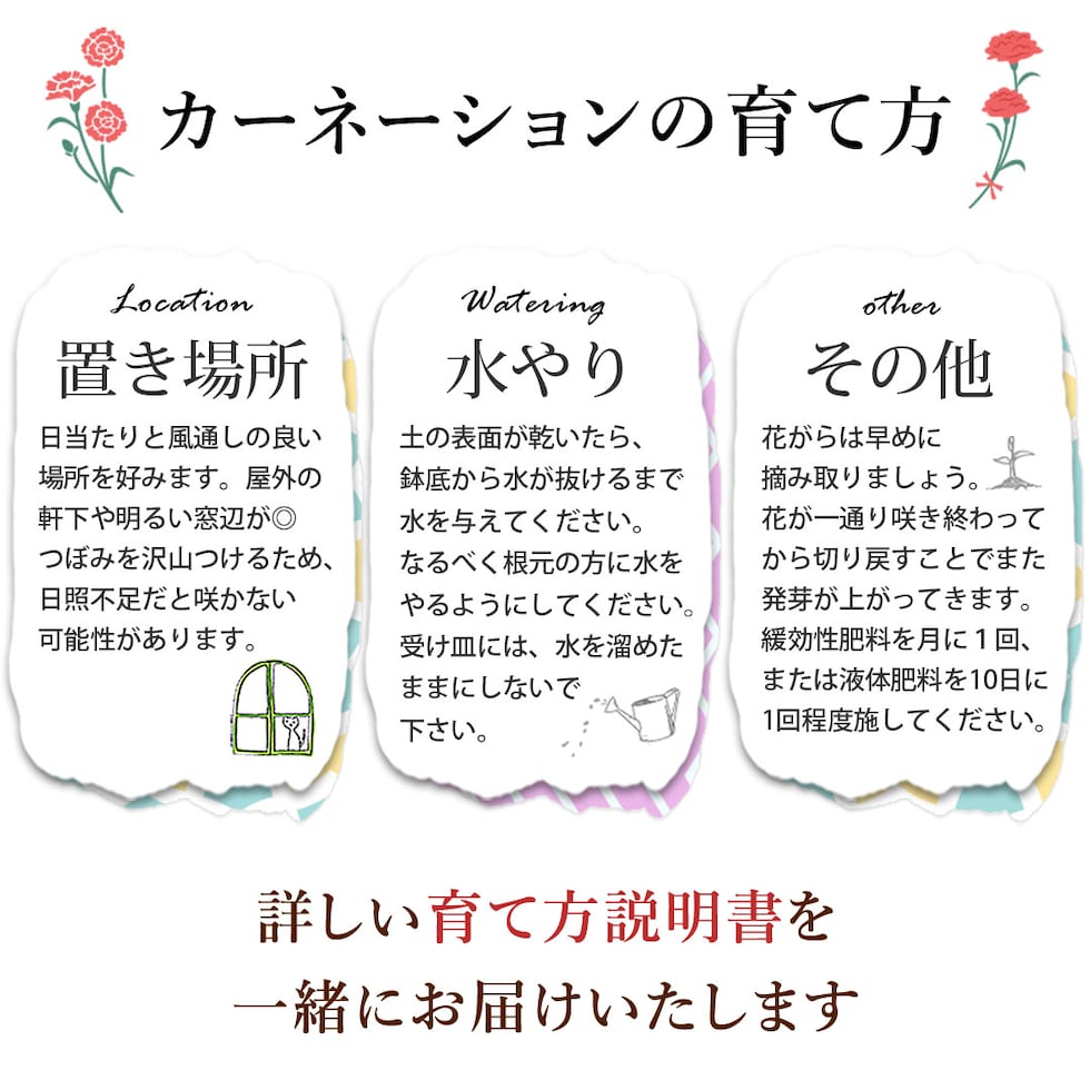 当店オリジナル母の日カード/育て方説明書/品質保証付きリーフレット