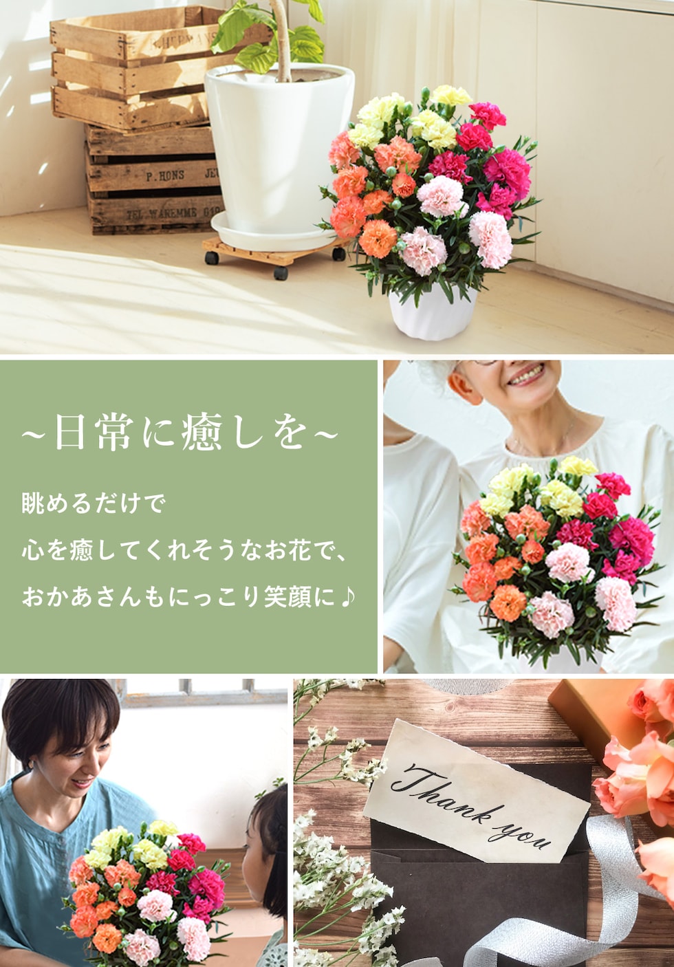 母の日期間中は全国的にご注文数が集中し、配送業者も大変荷物が混雑する為、お届けの遅延が発生する場合がございます。
