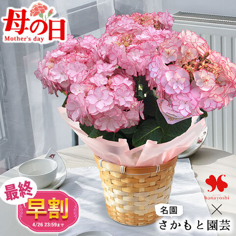 \早割!/母の日 2026 さかもと園芸 あじさい 鉢植え 5号鉢 inバスケット「KEIKOピンク」 花 ギフト プレゼント アジサイ 紫陽花