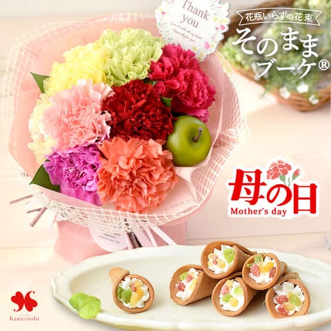 母の日 2026 花とスイーツ 花瓶の要らない花束 そのままブーケ「フェアリーピンク&花束のデザート」 花 ギフト プレゼント フラワーアレンジ