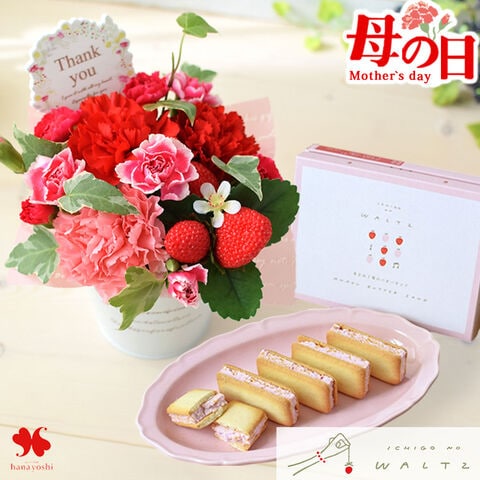 母の日 2026 花とスイーツ 季節のおまかせ生花アレンジメント ロゼッタ「ストロベリーガーデン&苺のバターサンド」 花 ギフト プレゼント フラワーアレンジ