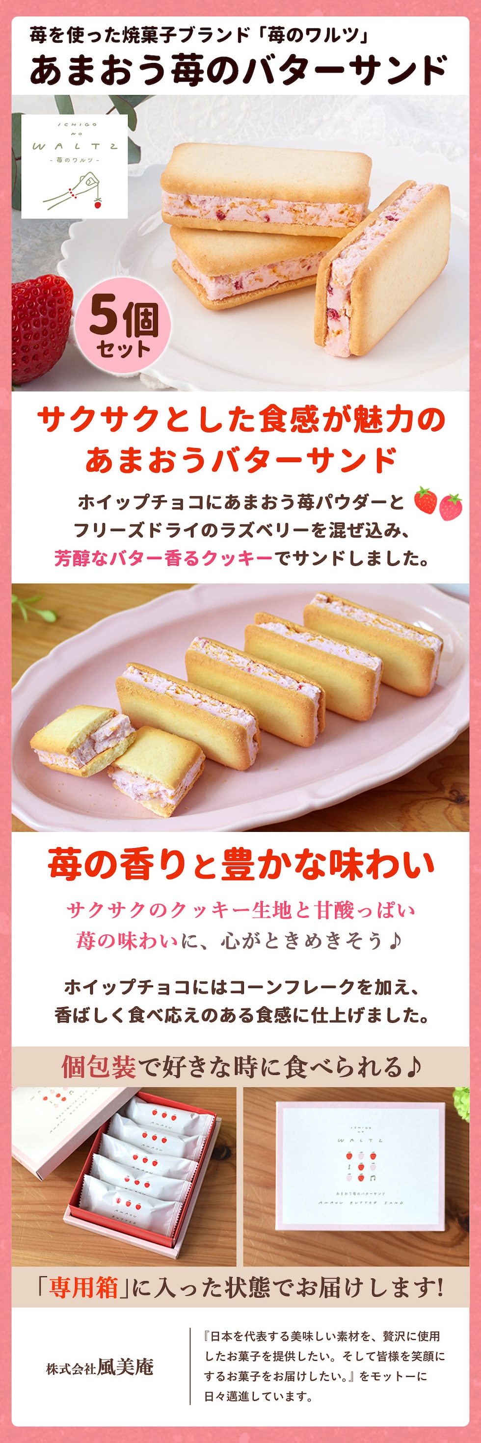 ◆苺のワルツ 「あまおう苺のバターサンド」(5個入り)※専用箱に入れてお届け