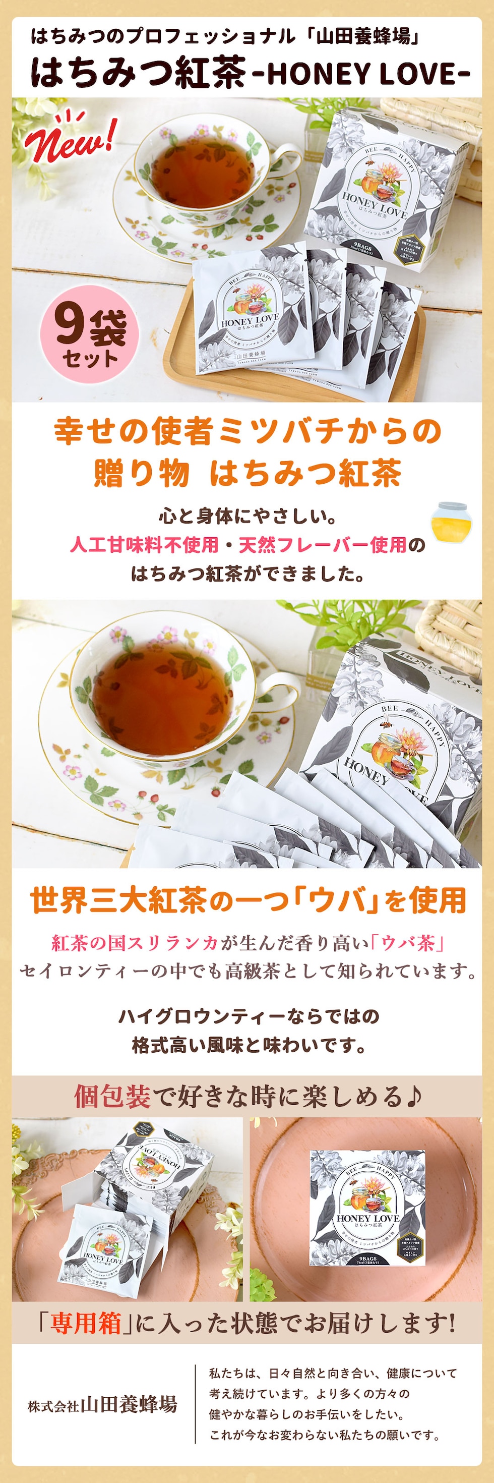◆山田養蜂場「はちみつ紅茶」(9包入り)※専用箱に入れてお届け