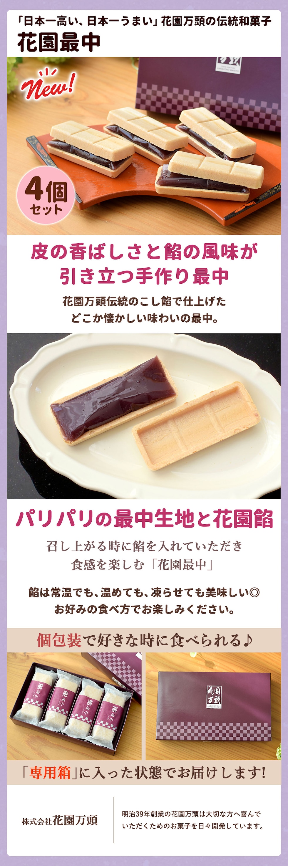 ◆花園万頭「花園最中」(4個入り)※専用箱に入れてお届け