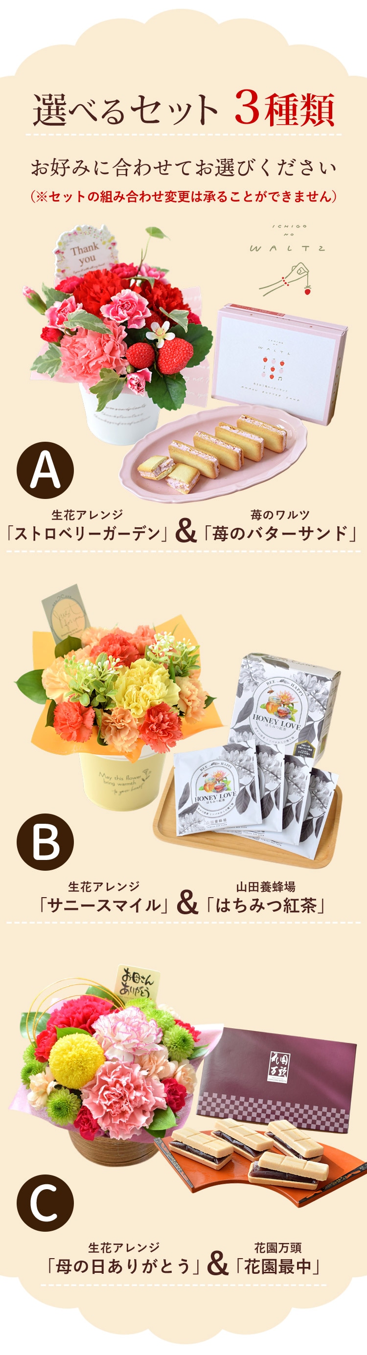 ●生花アレンジ 母の日ありがとう&花園最中