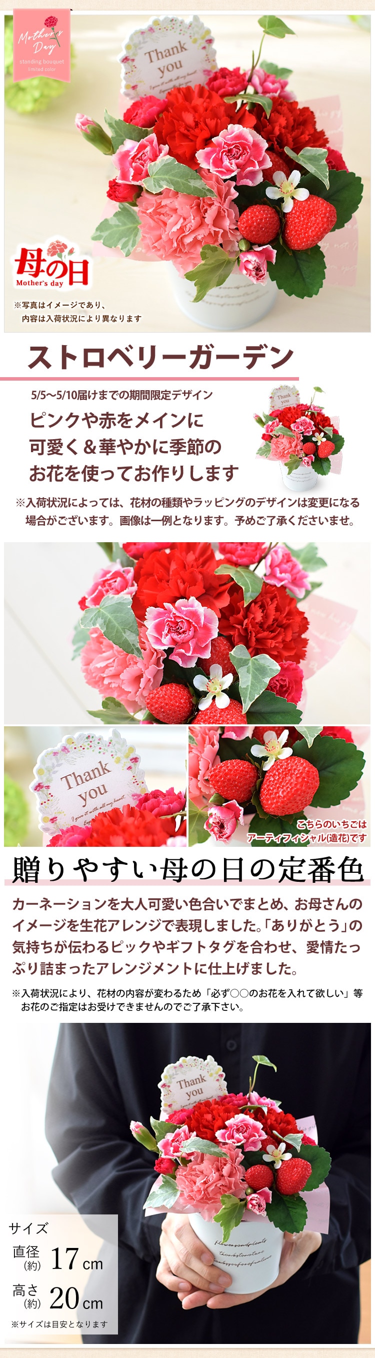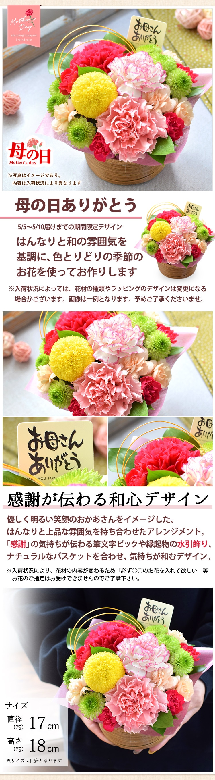 母の日ありがとう:(約)直径17 × 高さ18cm