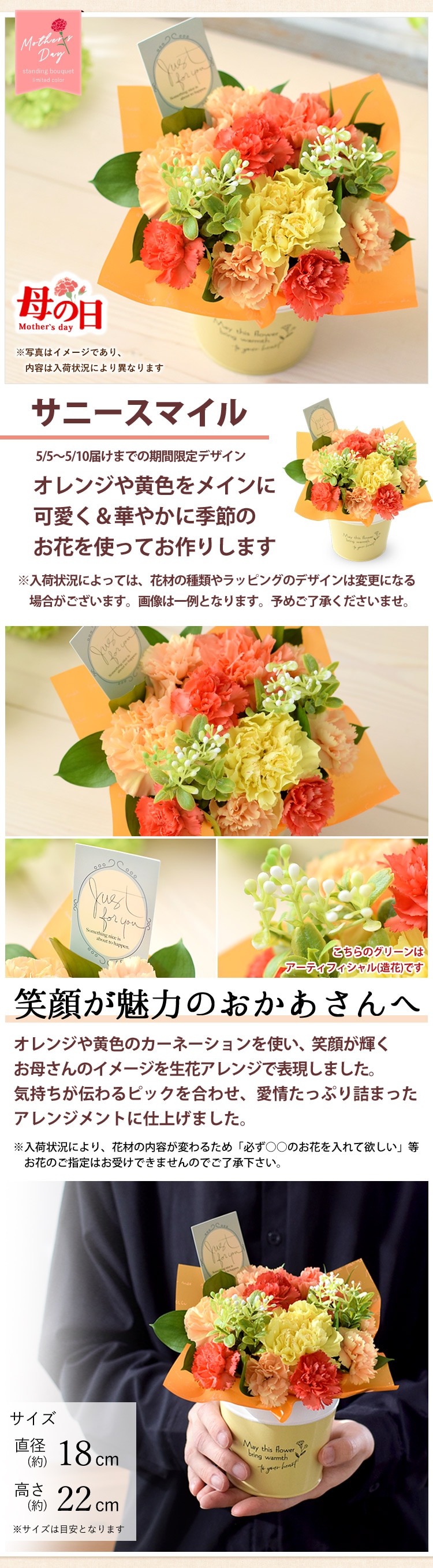 サニースマイル:(約)直径18 × 高さ22cm