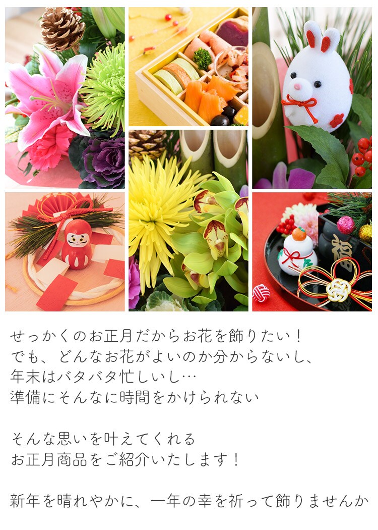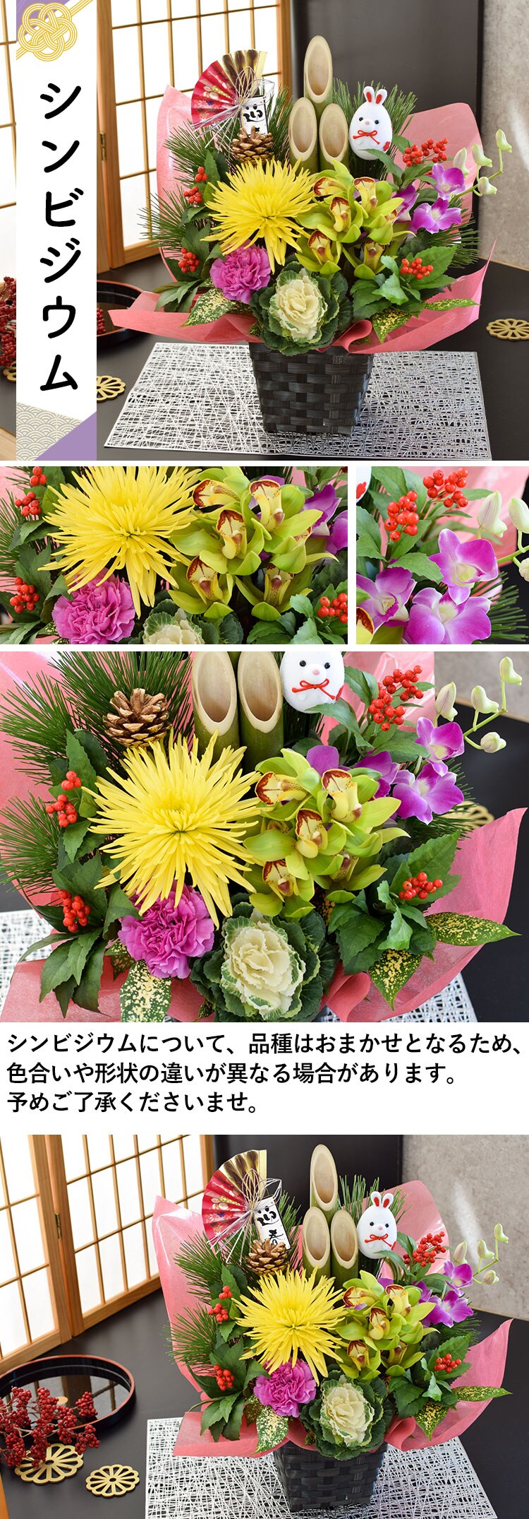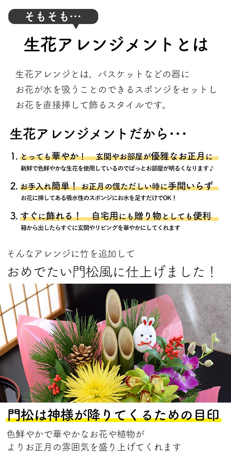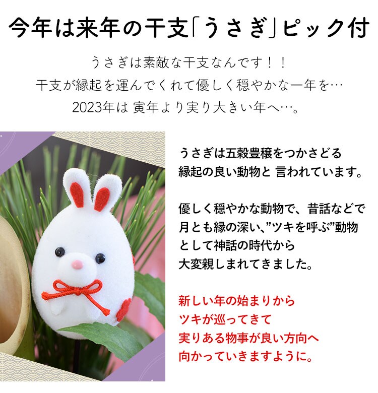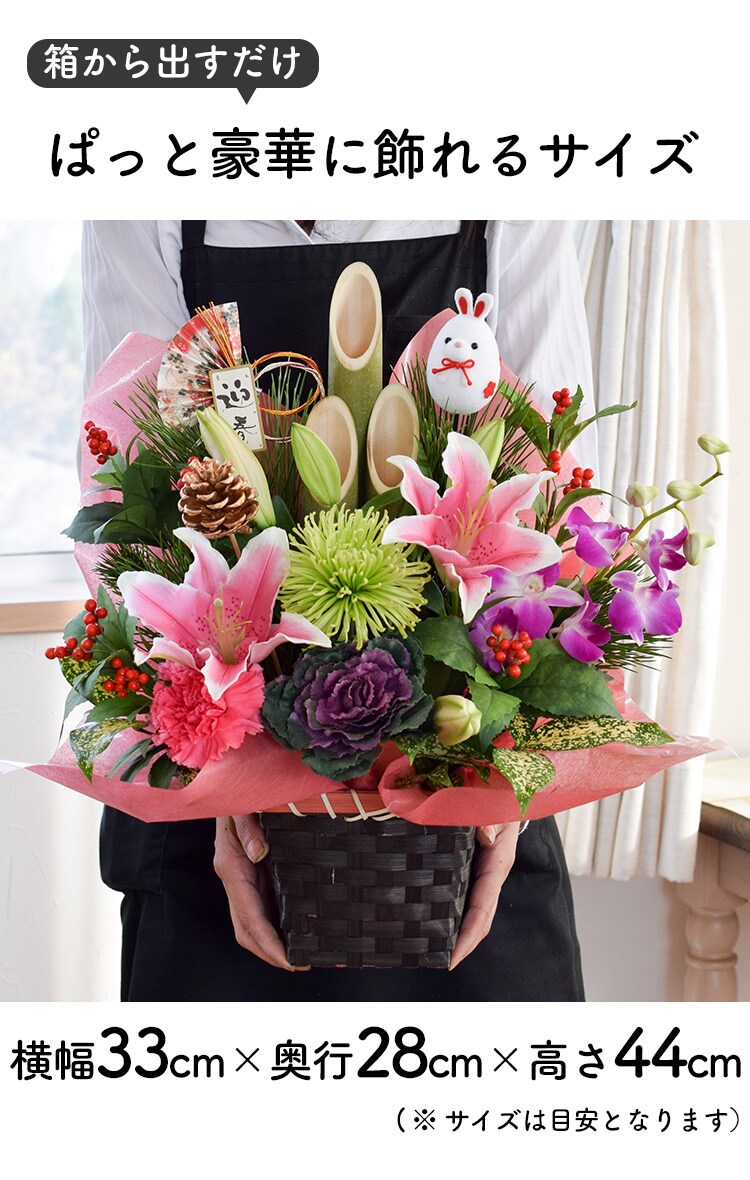 [12月30日]届 門松風 干支生花アレンジメント 福うさぎ「ユリver」【年の瀬定型文カード付】※北海道・沖縄はお届け不可 花由