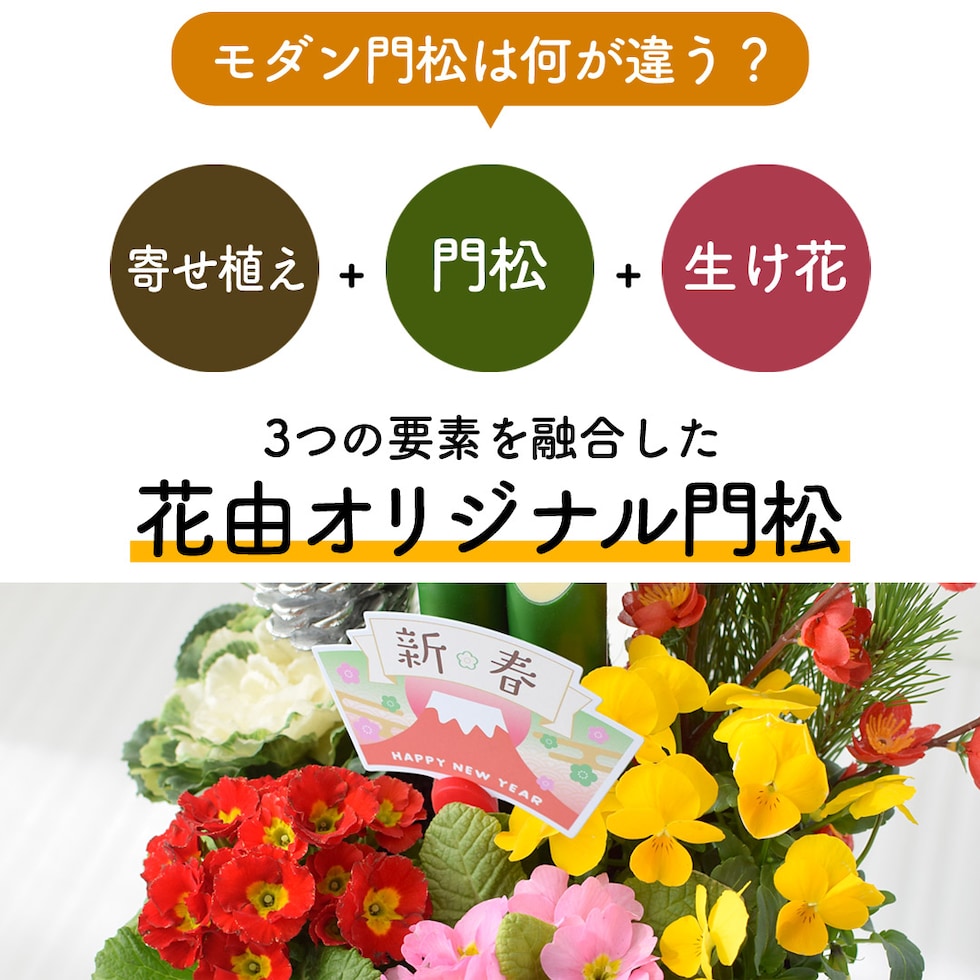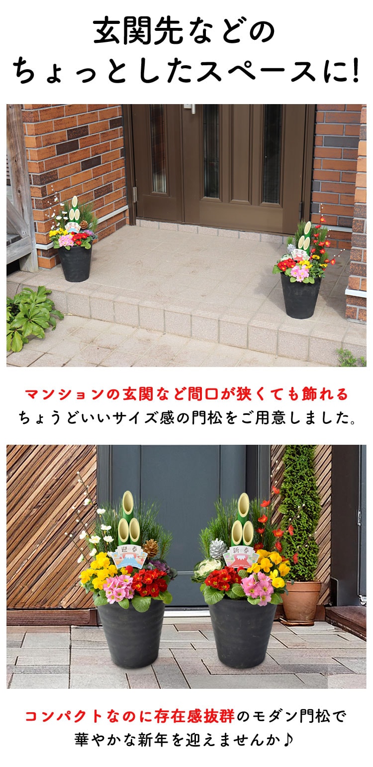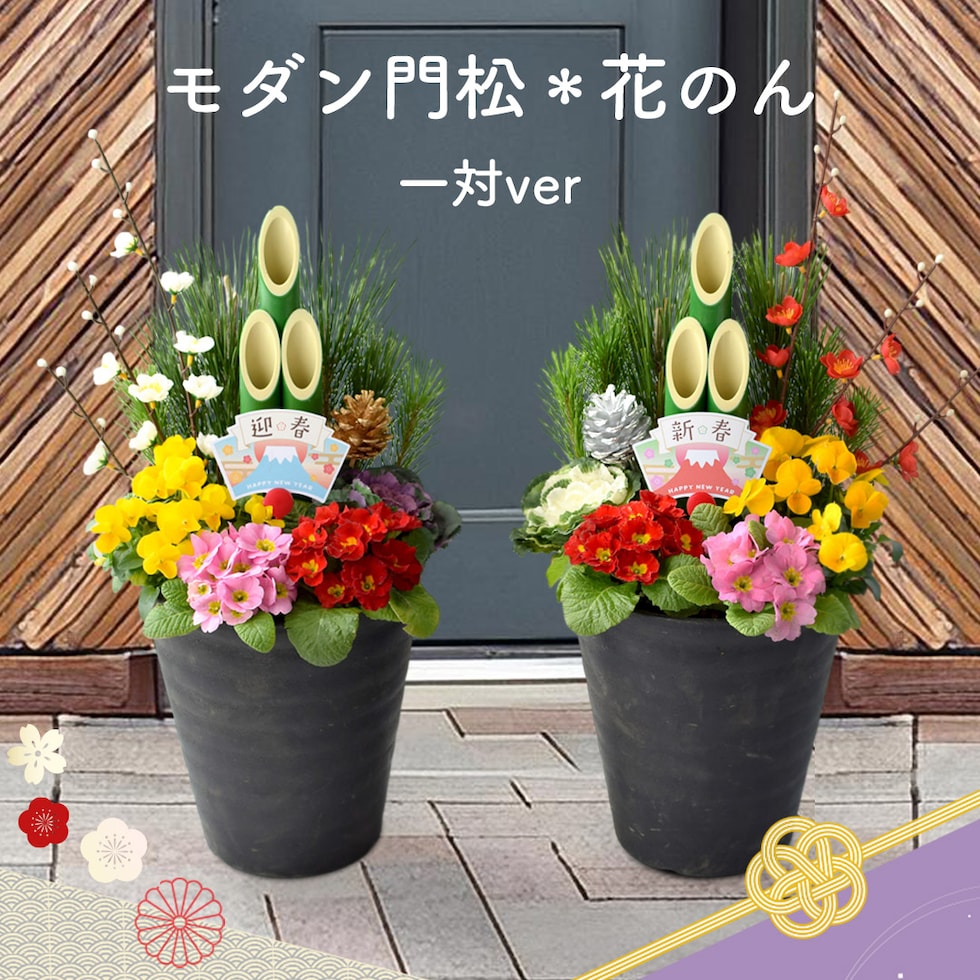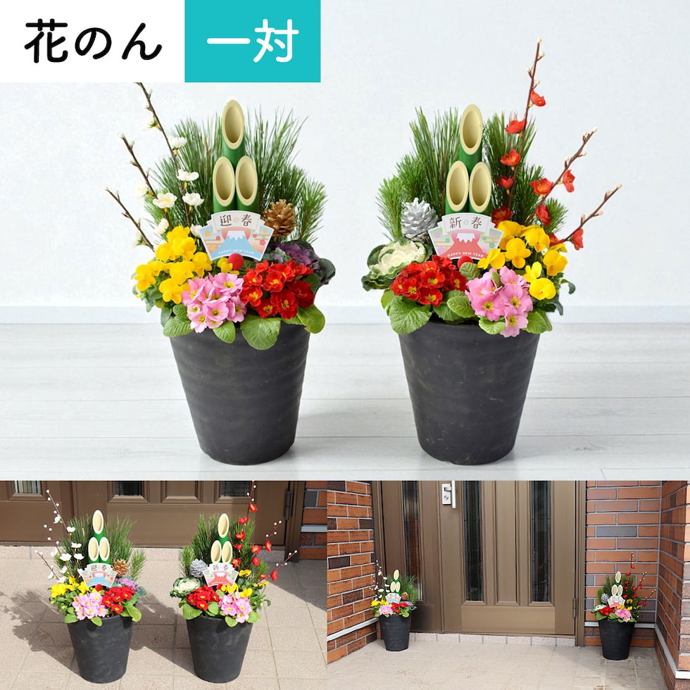 [12月30日]届 門松 一対 玄関 お正月 一対の迎春モダン門松 「花のん」 寄せ植え仕立て【年の瀬定型文カード付】※北海道・沖縄はお届け不可 花由