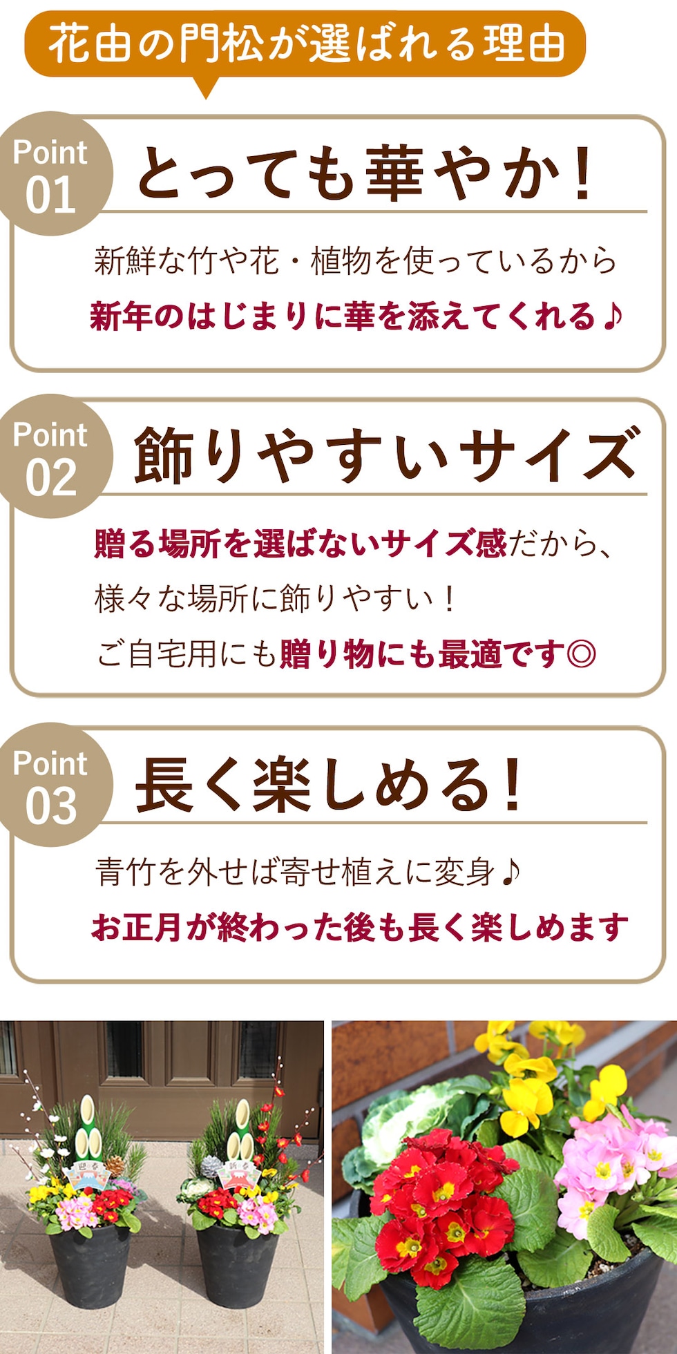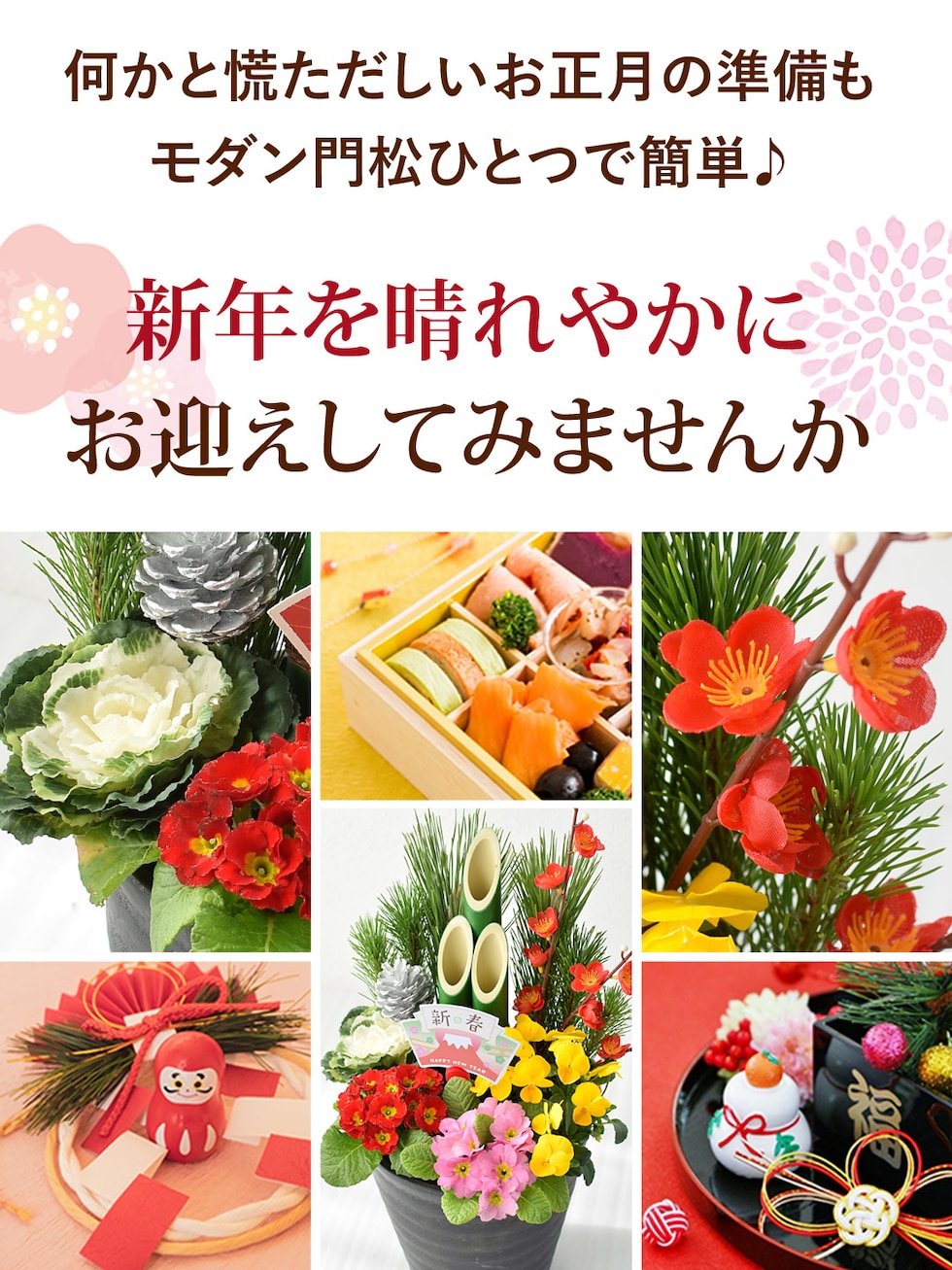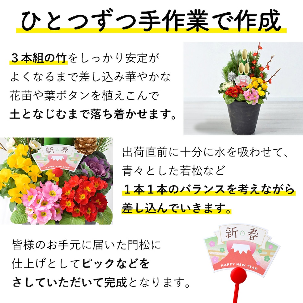 [12月30日]届 門松 一対 玄関 お正月 一対の迎春モダン門松 「花のん」 寄せ植え仕立て【年の瀬定型文カード付】※北海道・沖縄はお届け不可 花由