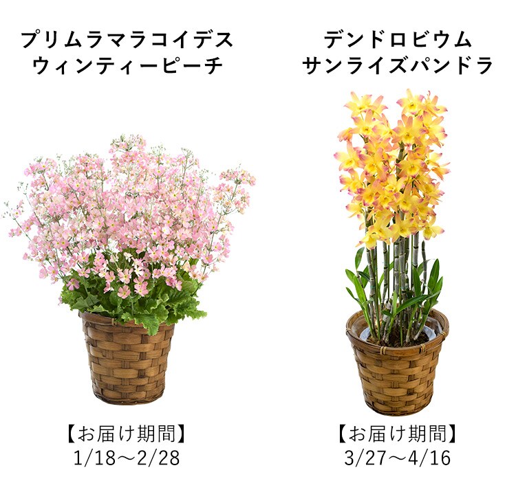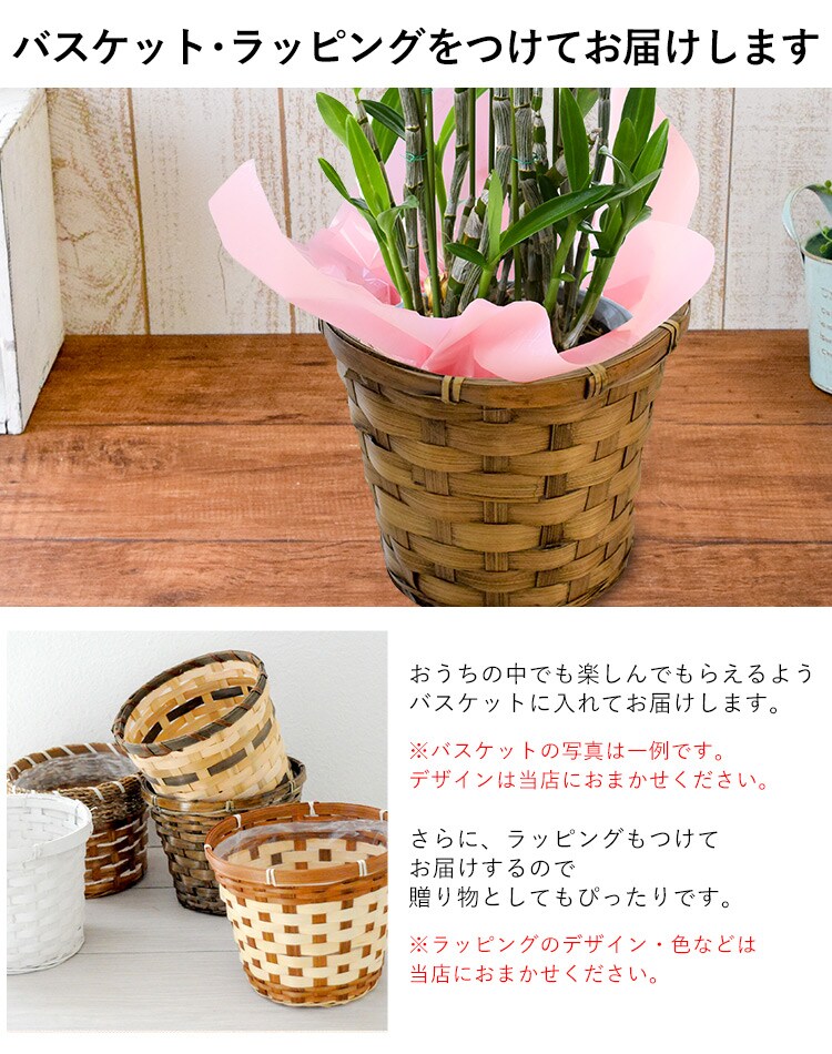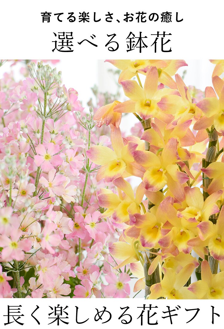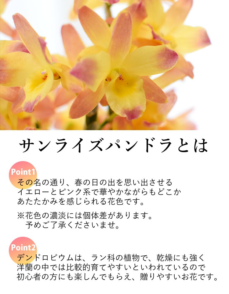 [3月27日~4月16日] 厳選!選べる季節の鉢花 バスケット付 「デンドロビウム”サンライズパンドラ”」 【Especially for Youメッセージカード付】 ※北海道・沖縄はお届け不可 花由