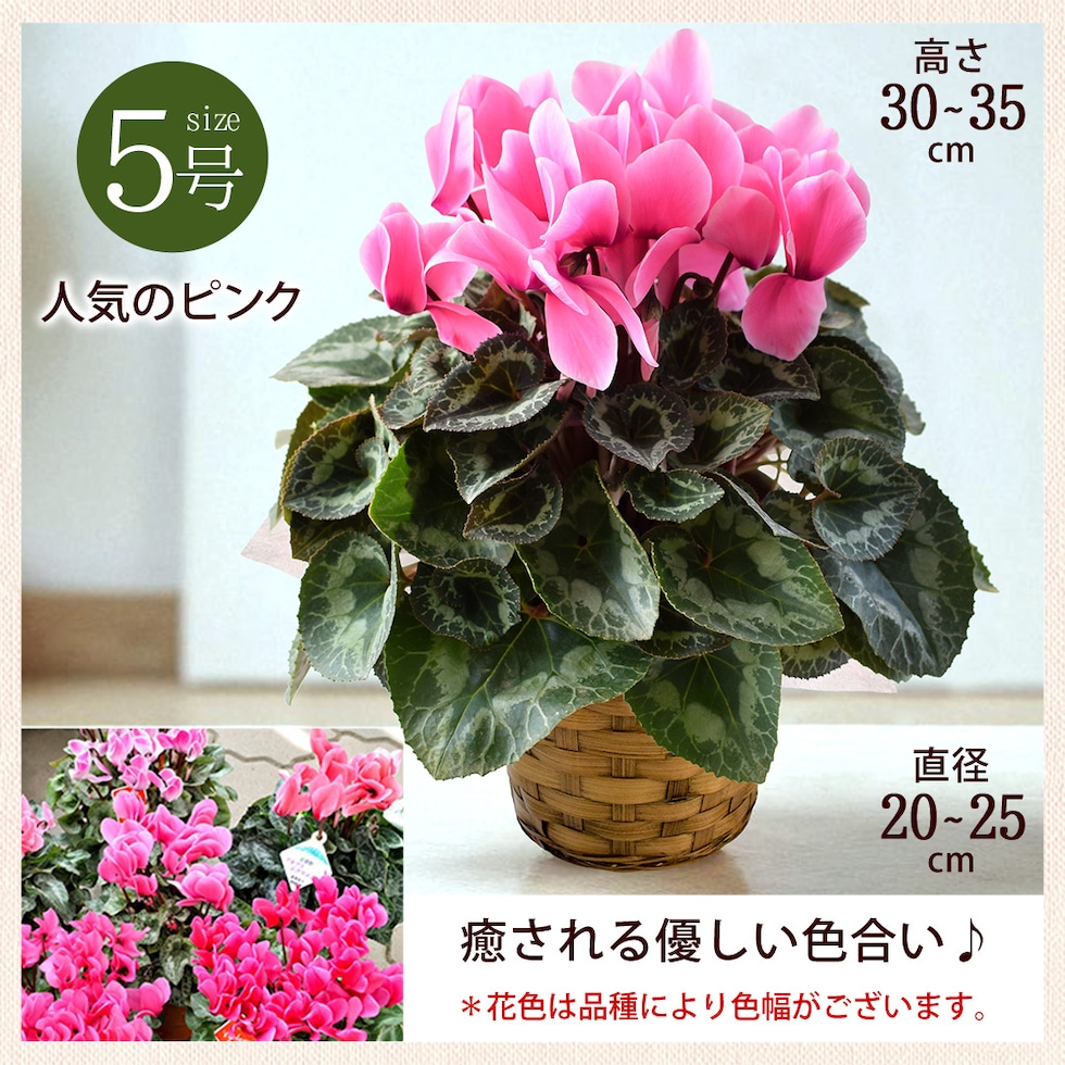 [11/15~12/25届] シクラメン 5号「人気のピンク」バスケット付【手提げ袋付】※北海道・沖縄はお届け不可 花由