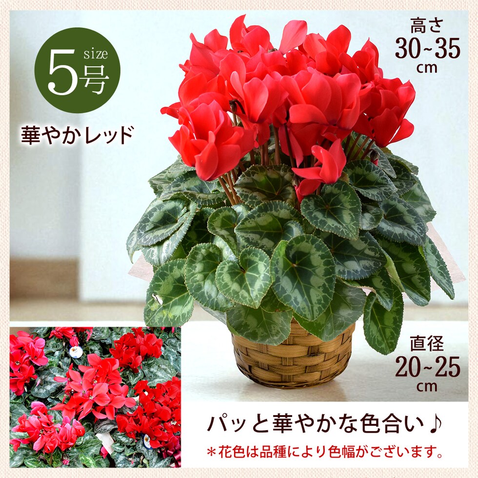 [11/15~12/25届] シクラメン 5号「華やかレッド」バスケット付【手提げ袋付】※北海道・沖縄はお届け不可 花由