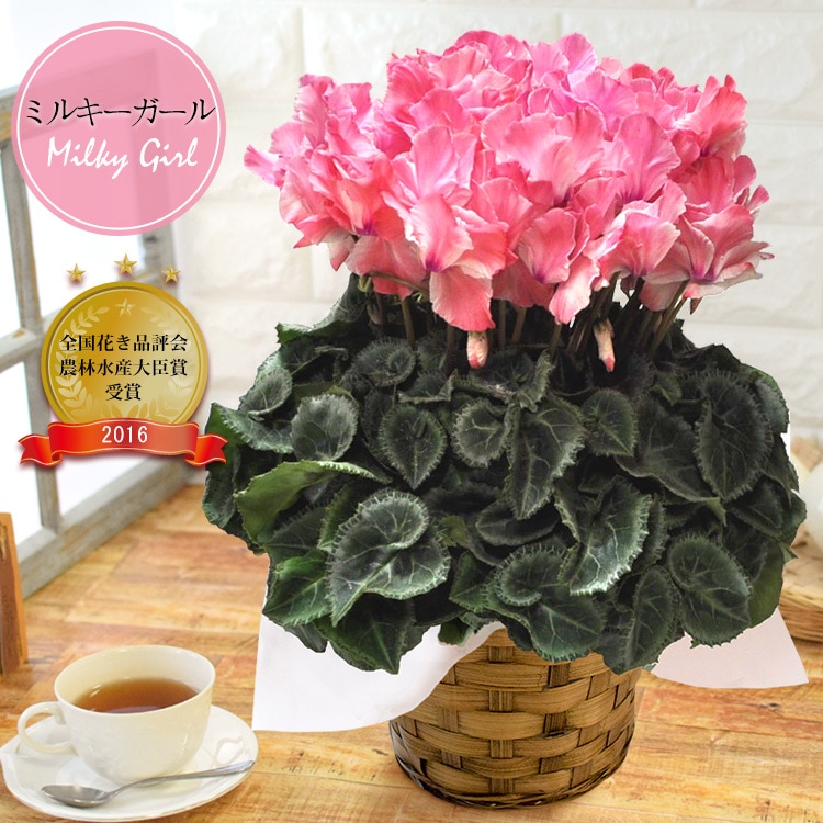 [12/3~12/20届] 人気のピンク系シクラメン「ひらりももバイカラー」【手提げ袋付】※北海道・沖縄はお届け不可 花由