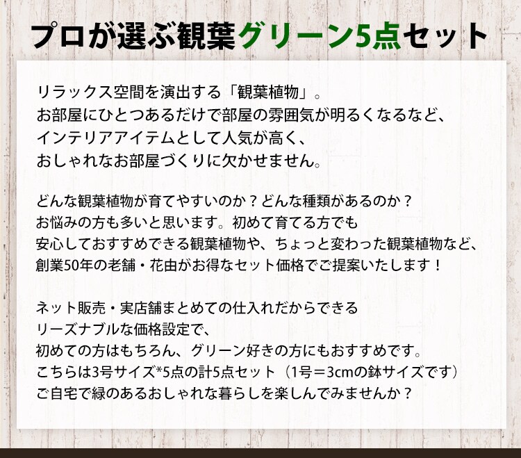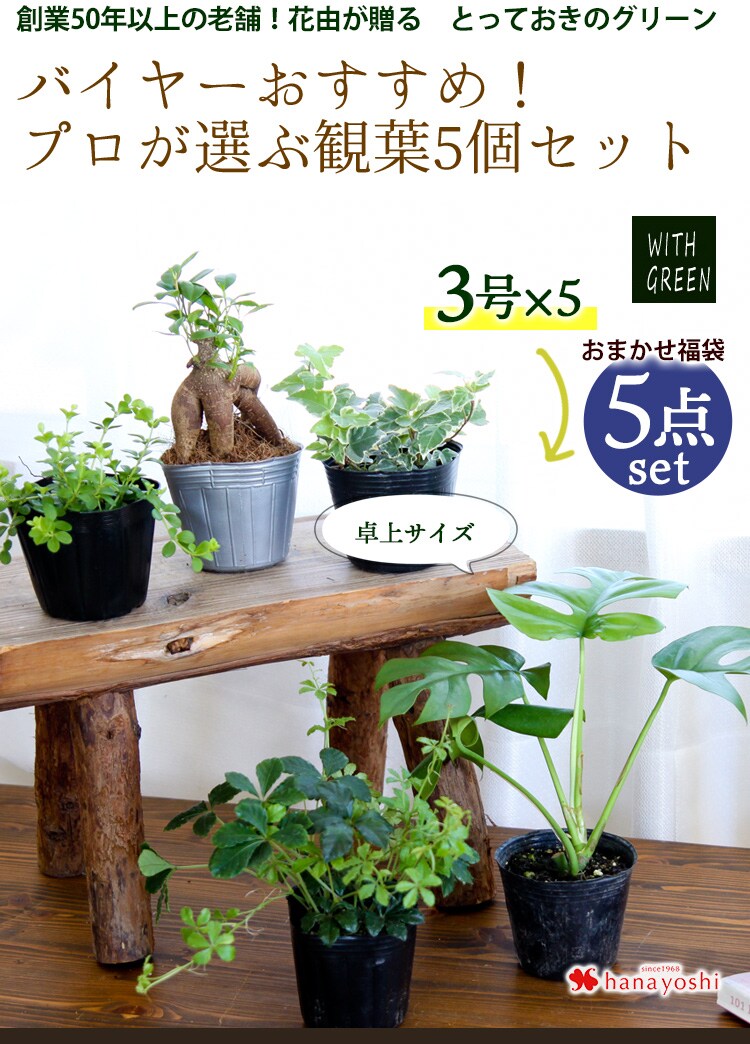 バイヤーおすすめ!プロが選ぶ観葉植物5点セット ※植物の種類は当店におまかせください ※北海道・沖縄はお届け不可 花由