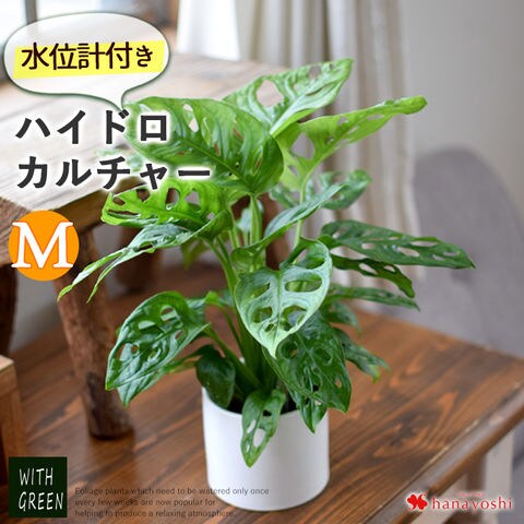 観葉植物 ハイドロカルチャー 水位計付きモノトーンポット Mサイズ「マドカズラ」【手提げ袋付】※北海道・沖縄はお届け不可 花由