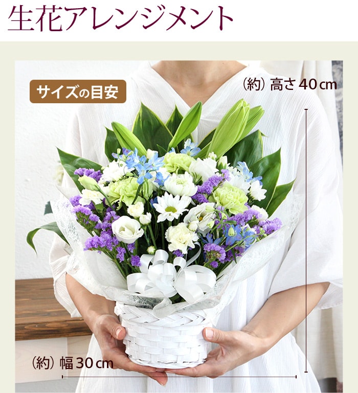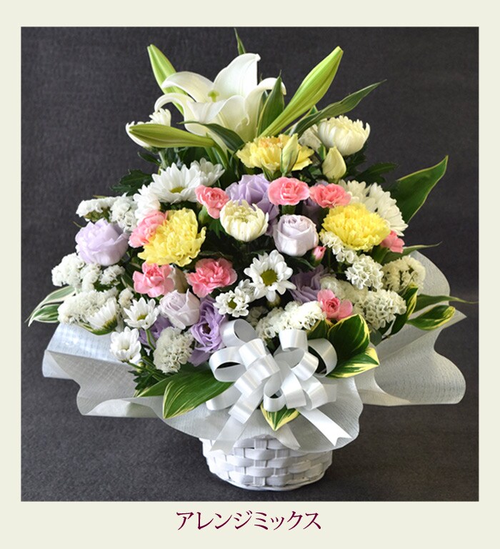 [冷蔵便]でお届け お供え生花アレンジメント Sサイズ「白+ピンク系」※北海道・沖縄はお届け不可 花由