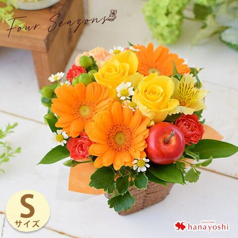 季節のおまかせ生花アレンジメント ロゼッタ 「【ラウンド】ビタミン」【手提げ袋付】※北海道・沖縄はお届け不可 花由